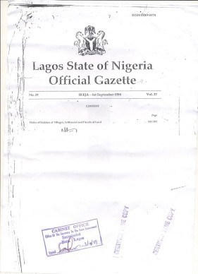 a. The Logo of the Country and the inscription of the title “LAGOS STATE OF NIGERIA OFFICIAL GAZETTE”